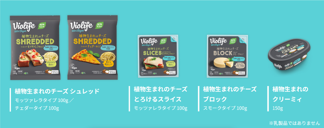 「Violife」は、乳やナッツを使用せずココナッツオイルを主原料とし、豊かな風味とコクが引き出すおいしさが特長の植物性チーズです。