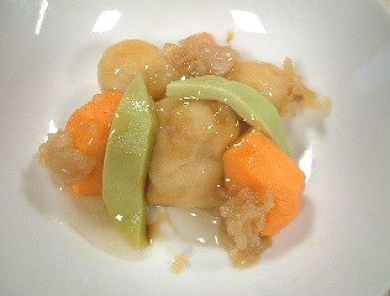 ユニバーサルデザインフード区分3の「舌でつぶせる」やわらかさの食事です。