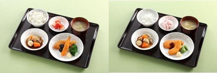 常食(左)とやわらか食「ソフリ」(右)との見た目の比較