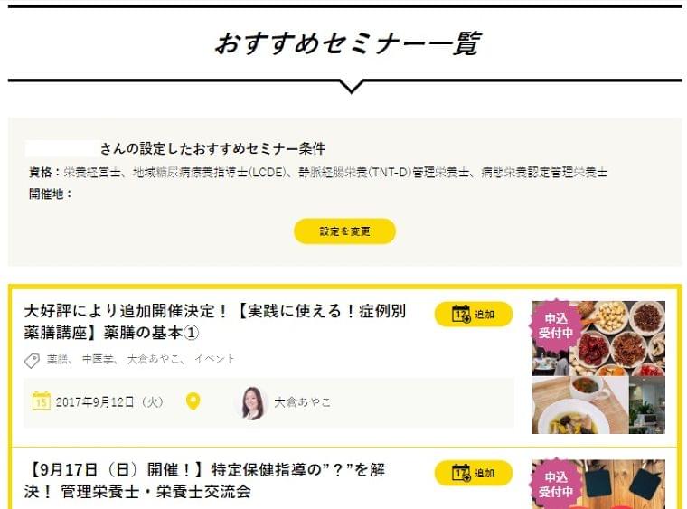各自のプロフィール情報を元に、おすすめセミナーが表示されます。