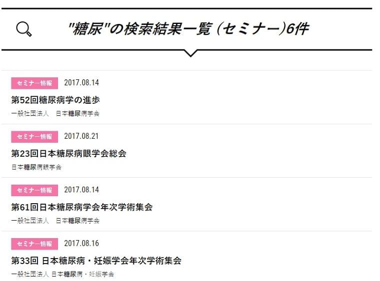 1.全国の学会、講習会、勉強会、セミナーを検索できる ※掲載許諾済みセミナーのみ