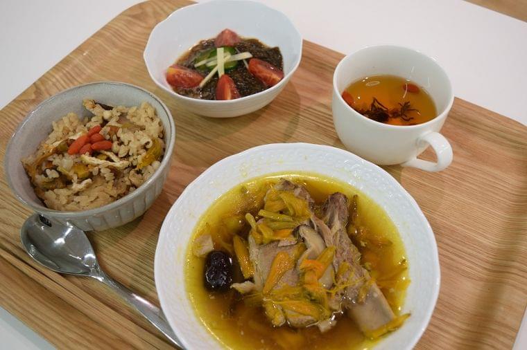 そして、薬膳スープのいい匂いが漂う中、お待ちかねの薬膳ごはんタイム。