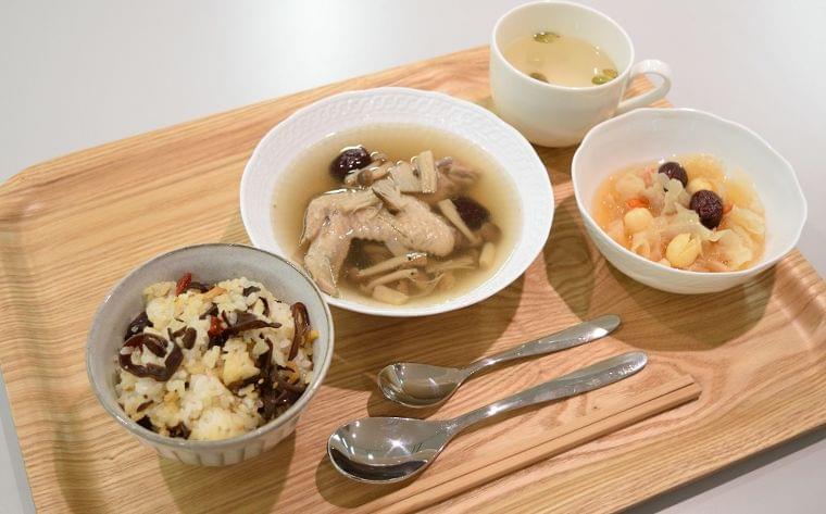 そして、講義が終了する頃には薬膳スープのいい匂いがしてきました。本講座では毎回、その回のテーマに沿ったレシピで作られた薬膳ごはんと薬膳茶が付きます。実際に食べて、薬膳を体感することができる大変魅力的なセミナーなのです。