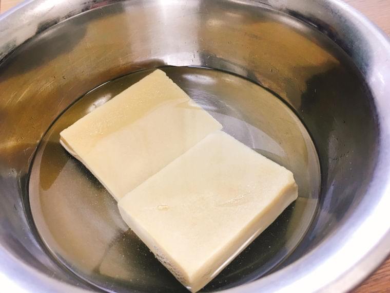 ① 高野豆腐は水で戻しておきます。