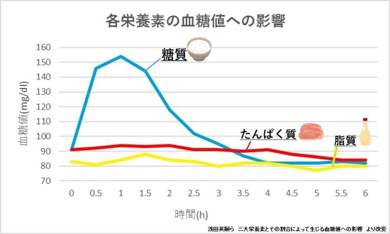 浅田英嗣ら 三大栄養素とその割合によって生じる血糖値の変化