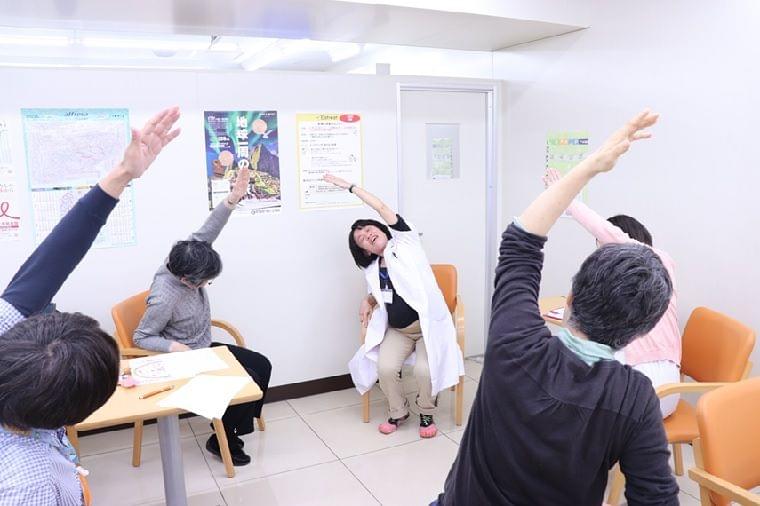 前半は管理栄養士2人からの話でした。少人数でしたので、話の途中で疑問点があれば都度解消し、復習を行ないながら進めることで知識の定着をはかりました。後半は椅子ヨガで体を温める運動を行いました。