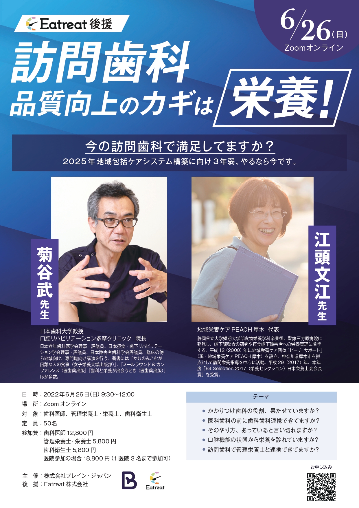 Eatreat後援セミナーのお知らせ「訪問歯科品質向上のカギは栄養!」