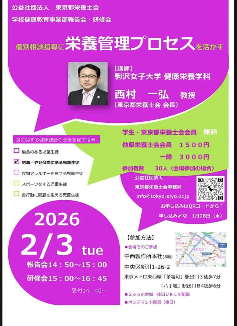 • 令和7年度学校健康教育事業部研修会「個別相談指導に栄養管理プロセスを活かす」