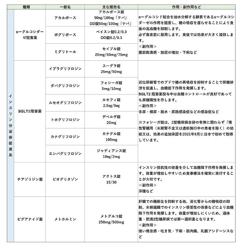 今回は、「インスリン製剤」を除く糖尿病治療薬について以下にまとめました。