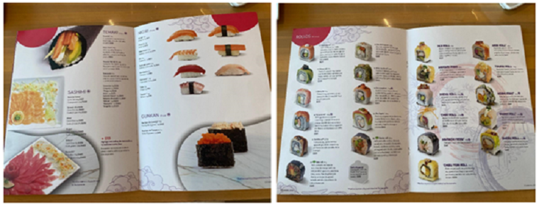 酸味を好まず、魚介類を生食する習慣のないメキシコ人の嗜好に合わせ、酢飯ではない白飯に調理済の魚介類や肉類、マンゴーやバナナなどのフルーツ、アボカドやクリームチーズ、えびや野菜のかき揚げなど脂質と甘みたっぷりの具材が巻かれ、唐辛子入りのマヨネーズやナッツなどが添えられると一気にメキシカンな雰囲気に仕上がります。