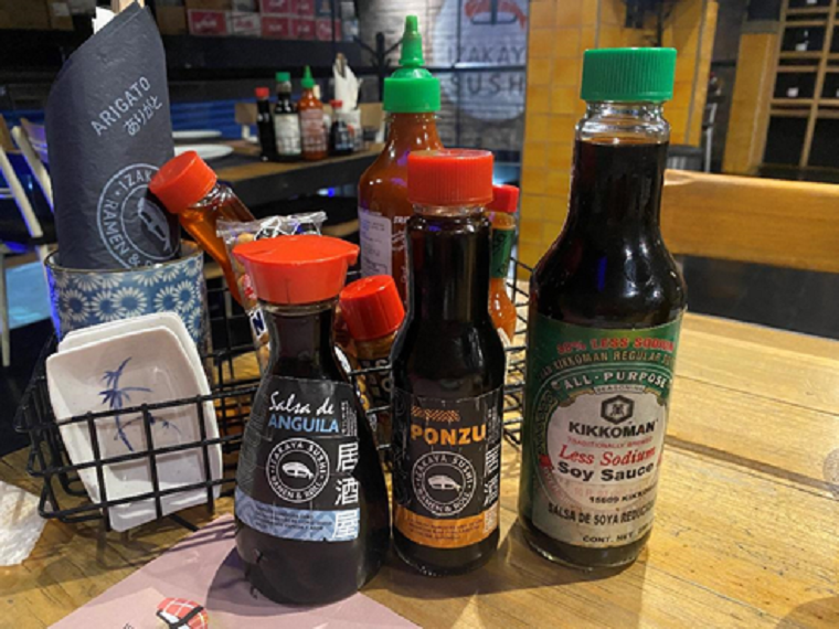 うなぎのたれ、ポン酢、減塩醤油のほか、タバスコやバレンシナ(メキシコでポピュラーなチリソース)が常備されています。