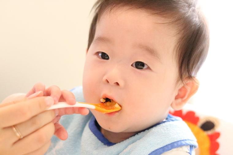 食べる練習をはじめたばかりの赤ちゃんは、大人のようにパクパク食べられません。もっと食べてほしいという気持ちからか、ついつい与えるスピードが速くなってしまわないように注意してください。食べ物が口の中に入っても、すぐ飲み込まずじっとしていたり、一回飲み込む動作をしても、口の中に食べ物が残っていることがあります。ゆったりとしたテンポで離乳食を与えることは、離乳食の段階が進んでいってもずっと意識していきたいところです。