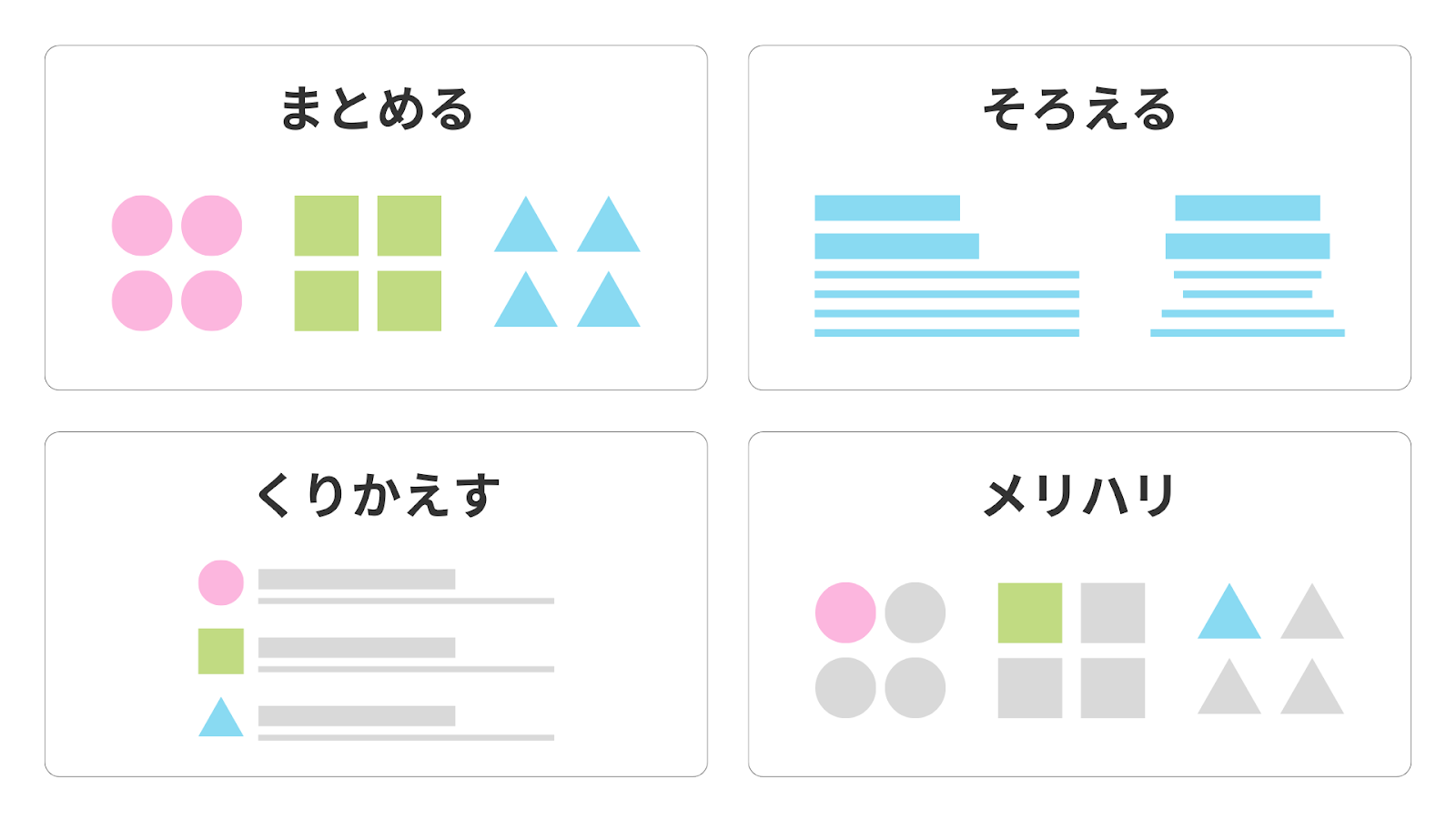 デザインには、4つの基本原則があり、情報を整理していきます。何となく見にくいなと思う資料も、この基本原則を意識するだけで見え方が変わります。