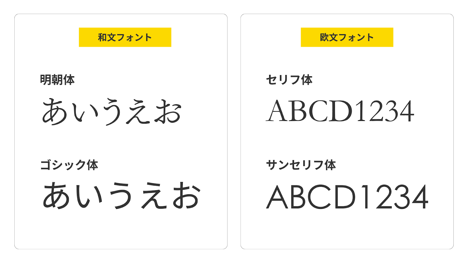 和文(日本語)フォントは、大きく「明朝体」と「ゴシック体」に分類されます。