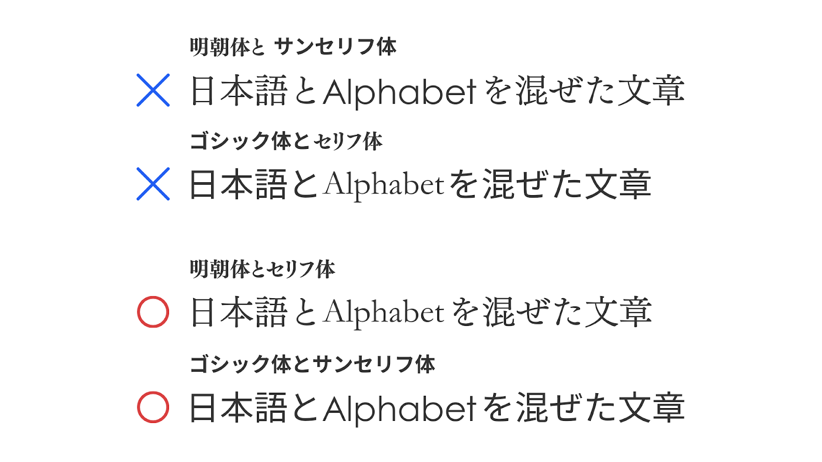 日本語とアルファベットが混在する文章の場合は、それぞれ相性のよいフォントを選ぶことでより読みやすい文章になります。