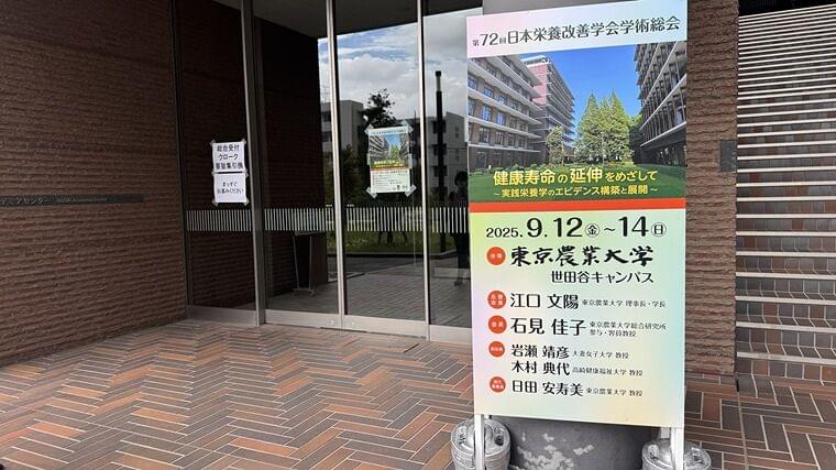 令和7年9月12日〜14日の3日間にわたり、東京農業大学世田谷キャンパスにて「第72回日本栄養改善学会学術総会」が開催されました。このコラムでは、本学術総会で得られた情報の一部をご紹介します。