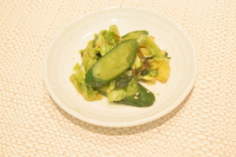 ②ポリ袋に①と塩昆布、刻んだしそを入れ、しっかりもんで冷蔵庫で30分程漬け込む。