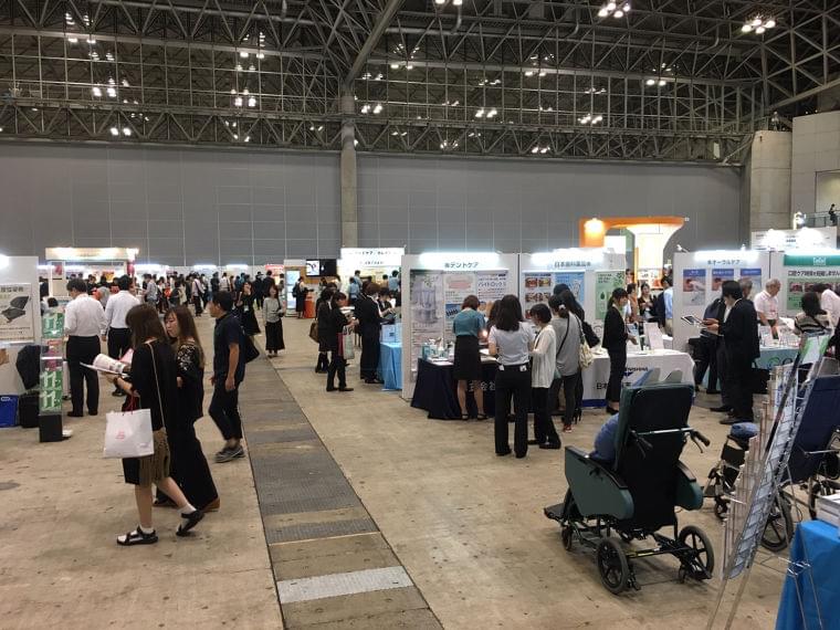 また企業展示会場では、A.食品ゾーン41社、B.機器・機材ゾーン32社、C.口腔ケアゾーン16社、D.介護ゾーン7社、E.フットケア3社、F.その他15社の計114社がブースを出展しており、イートリート株式会社もF.その他部門で出展していました。イートリート株式会社では、栄養士向けサイトとしての情報発信やセミナーの開催、栄養価計算機能などの説明を行いました。ブースには若手の管理栄養士の方、海外の栄養士の方々、管理栄養士養成施設の先生方だけではなく、他職種の方々にも興味を持っていただけました。職場の栄養士の方々にも当サイトの話を広めていただけるとのことでしたので、ここにも多職種連携が浸透していることが窺い知れました。