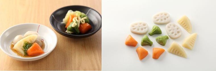 マルチ調理が可能な「そのまま野菜シリーズ」や、調味液で煮込むことが出来る「お餅風ムース」は、ご家庭でお好きな味付けで楽しめる、素材タイプの商品になります。煮物や汁物、年末年始はお雑煮なども、すべてやわらか食でお楽しみいただけます。