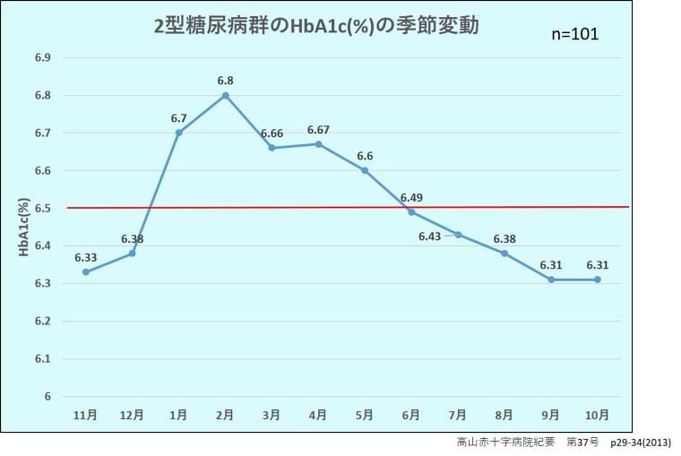 見ての通り体重と同じように、血糖値もこの時期に一番高くなることが示唆されています。