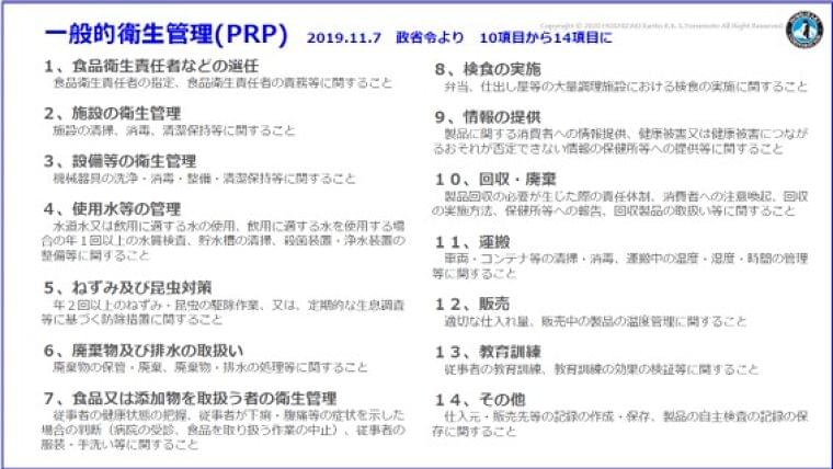 具体的に「一般的衛生管理プログラム」は14項目(もともと10項目であったのが2019年11月に14項目へ増えています)で構成されています。