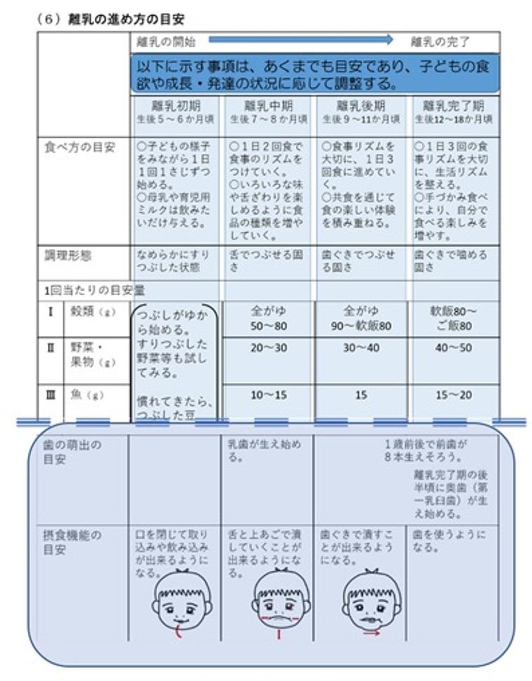 (出典:授乳・離乳の支援ガイド2019年改訂版 離乳の進め方の目安)