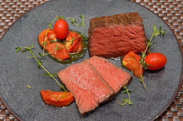 ジューシーでやわらか、鮮やかなロゼ色のローストビーフ。
