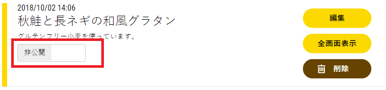 以前公開(共有)したデータを非公開にしたい時は、「公開中」となっているボタンをクリックすると「非公開」という表示になり、公開(共有)状態がストップします。