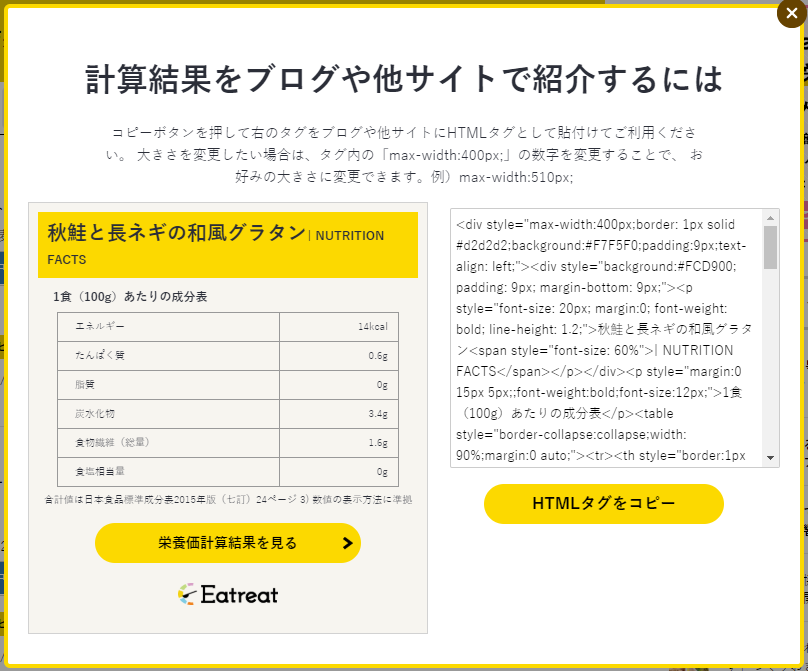 無料のEatreat会員登録をしていただくと、Eatreatの栄養価計算機の便利機能をすべて使うことができます。会員登録(登録無料)は下のボタンから↓