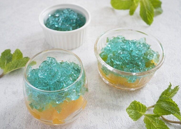 空色のゼリーは見た目にも涼やか! つるんと食べやすいので、ぜひお試しください。