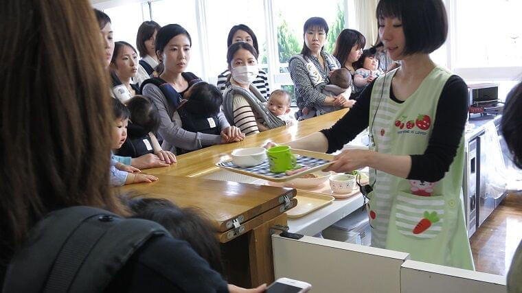 一人目の子どもを出産した際、母子栄養にとても興味がわき、いつか産婦人科で働きたいと願っていた矢先に配属が決定し、栄養科責任者として異動しました。そこでは給食管理、妊産婦の栄養管理、栄養指導が主な業務です。治療のための食事ではなく、産後の身体と心を癒すおいしい食事のために、献立作成には多くの時間を割きます。流行の食材やメニューを取り入れ、高い技術を持った調理師と協力しながら美しくておいしい食事を作ります。また、自分の子どもの離乳食の時に猛勉強したことを活かし、離乳食教室(もぐもぐサロン)を主宰、毎月キャンセル待ちの人気の教室となりました。離乳食教室では、デモンストレーションや座談会を行い、質問にじっくり答えて離乳食作りの不安を解消し、肩の力を抜いて笑顔で継続できるような離乳食の方法をお話ししてきました。ここでの経験が、今の自分の原動力となっています。
