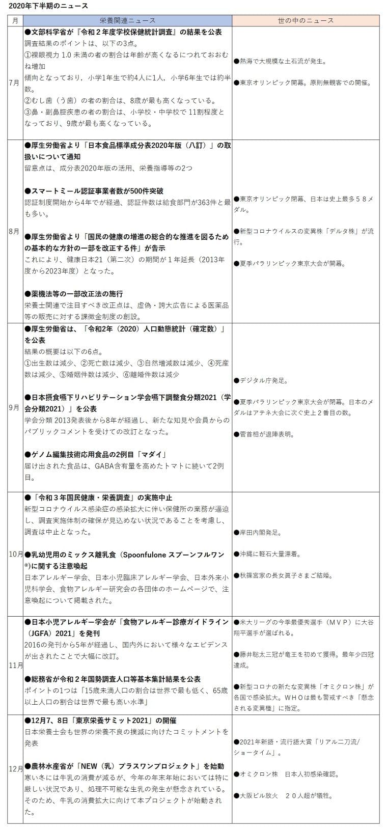 2021年下半期では、どんなニュースがあったのか、栄養関連の主なニュースをピックアップしました。世の中のニュースとあわせてご覧ください。