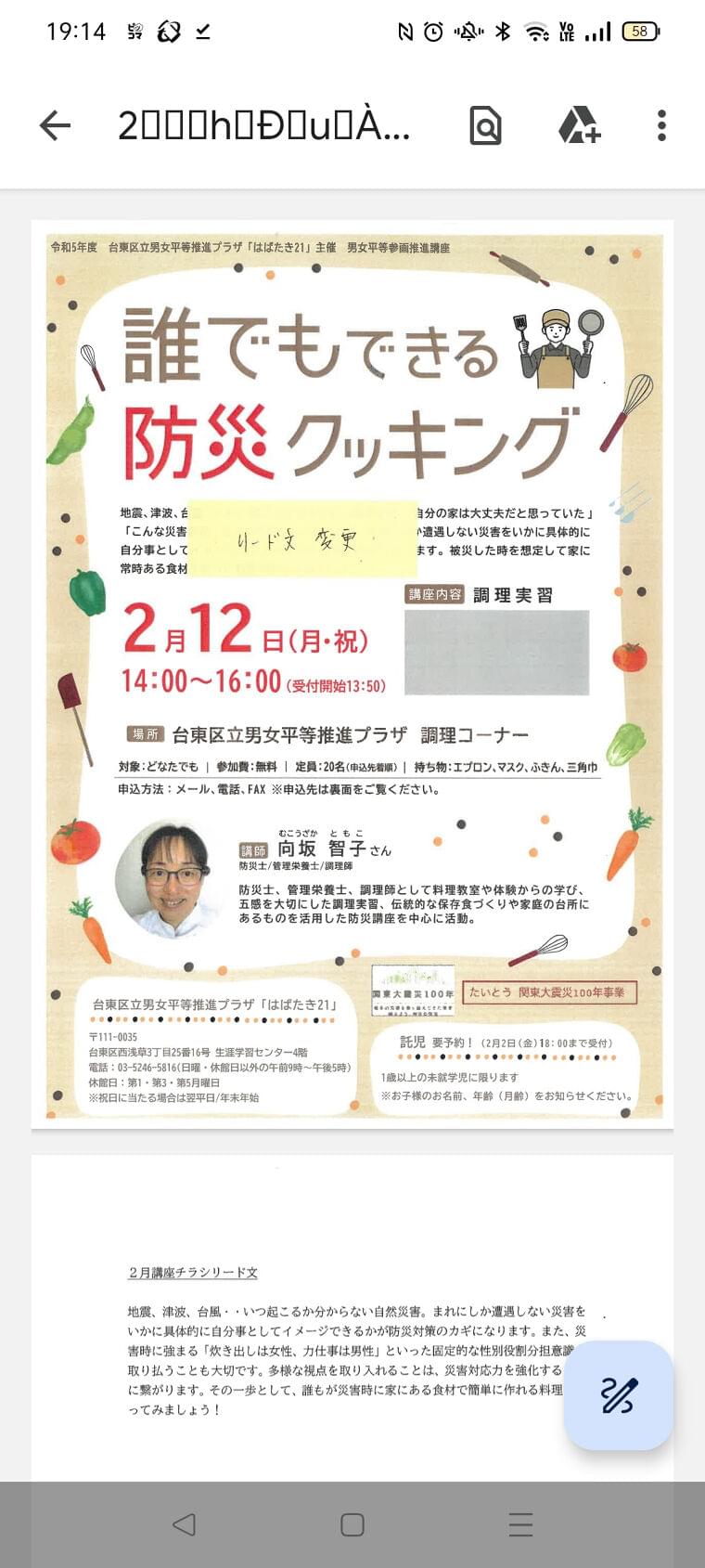 男女共同参画目線で防災クッキング講座の講師を務めさせていただきました